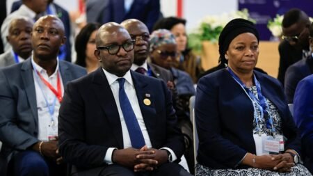 L’ancien chef du gouvernement Jean-Michel Sama Lukonde Kyenge et l’ex-vice-Première ministre Eve Bazaiba lors de la COP27 en Égypte, à…