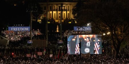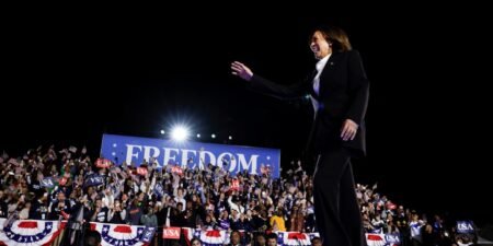 Image de couverture : La vice-présidente américaine, Kamala Harris, candidate démocrate à la présidence, prononce un discours de campagne à…