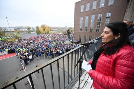 La présidente du comité d’entreprise de Volkswagen, Daniela Cavallo, s’adresse aux employés du constructeur automobile, au siège de l’entreprise, à…