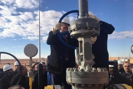 Abdelmoumen Ould Kaddour, alors directeur général de la compagnie publique Sonatrach, lors du lancement d’un nouveau gazoduc en Algérie, en…