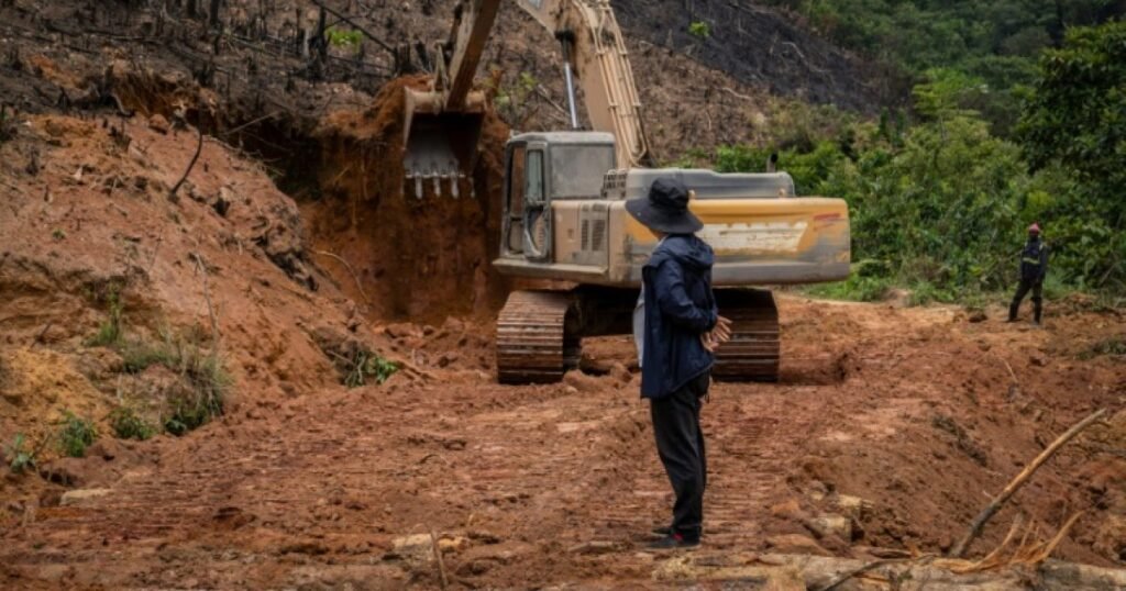 Des travailleurs chinois restaurent une route qui mène à la mine semi-industrielle de Kamituga, en République démocratique du Congo, le 21 septembre 2024 ( AFP / Glody MURHABAZI ) Rivières polluées, plantations détruites, manifestations réprimées : à Kitutu, en République démocratique du Congo, le père italien Davide Marcheselli se bat depuis des années contre les sociétés chinoises qui exploitent l’or illégalement dans la région. Des centaines d’entreprises étrangères, principalement chinoises, exploitent l’or dans la province riche en ressources naturelles du Sud-Kivu (est), sans déclarer leurs bénéfices et sans permis, selon les autorités locales. Pendant longtemps, à Kitutu, la société civile…