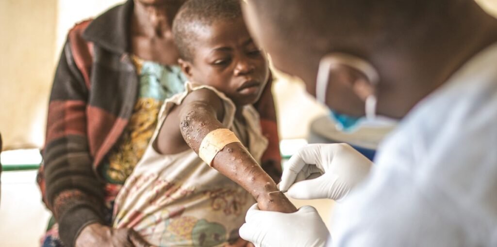 AboUrgence sanitaire – L’épidémie de Mpox progresse en République démocratique du CongoDans la région du Nord-Kivu, médecins et ONG se battent pour endiguer la résurgence du virus. Les premiers vaccins devraient arriver dans les prochains jours.Patricia Huon- Envoyée spéciale en RDCPublié : 15.09.2024, 11h51Le Mpox suscite des symptômes grippaux et des éruptions cutanées douloureuses.TAMARA BERGER/MEDAIRAbonnez-vous dès maintenant et profitez de la fonction de lecture audio.BotTalkDevant la salle de consultation, un petit garçon pleure. Des larmes de douleur. Sa mère, impuissante, lui gratte doucement le dos pour tenter de le soulager. Chance, 3 ans, à la fièvre et des boutons sur…