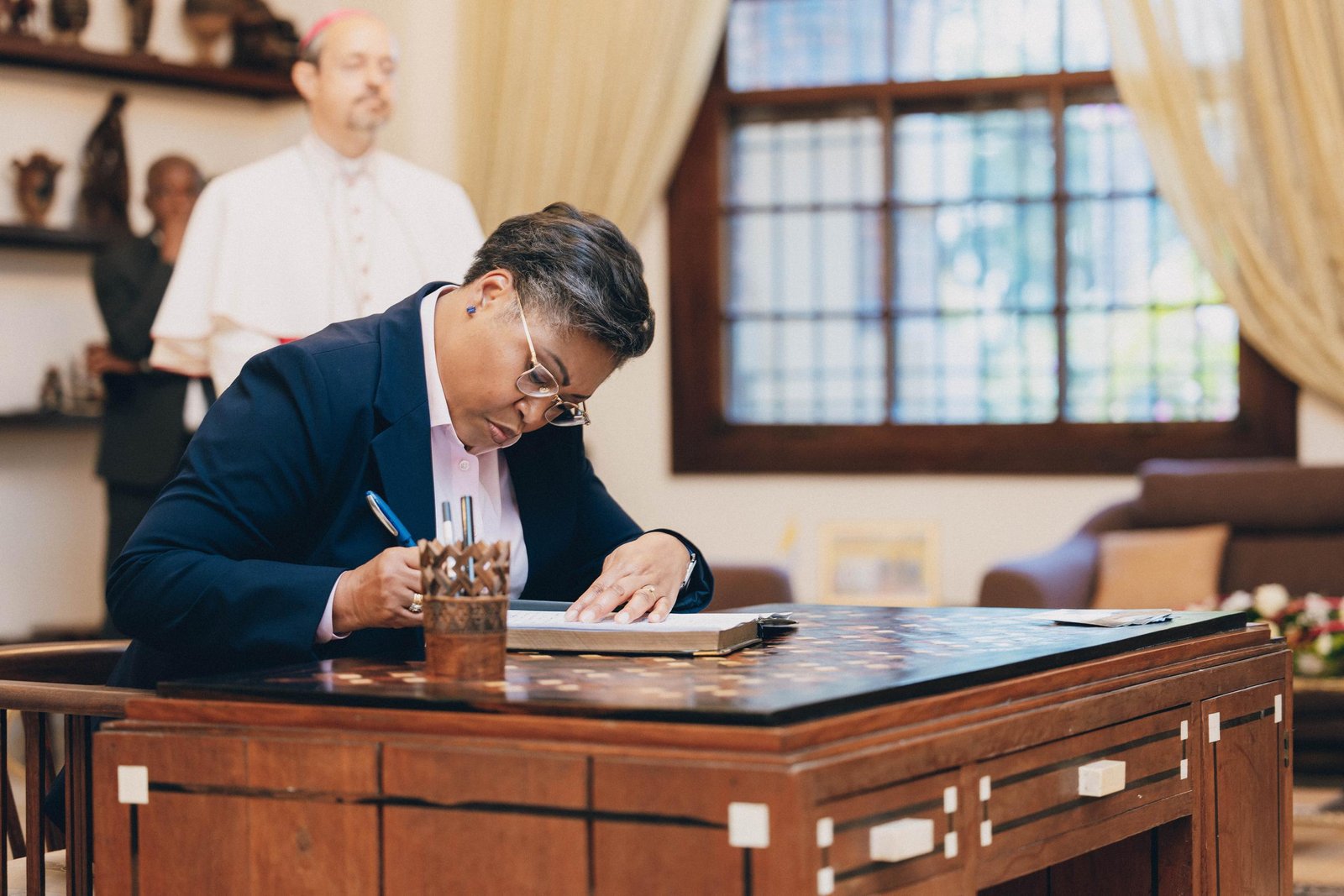 Dans le livre de condoléances ouvert à la Nonciature apostolique du Saint-siège en RDC, la cheffe du Gouvernement a salué la mémoire d’un grand artisan de la paix à l’échelle mondiale.