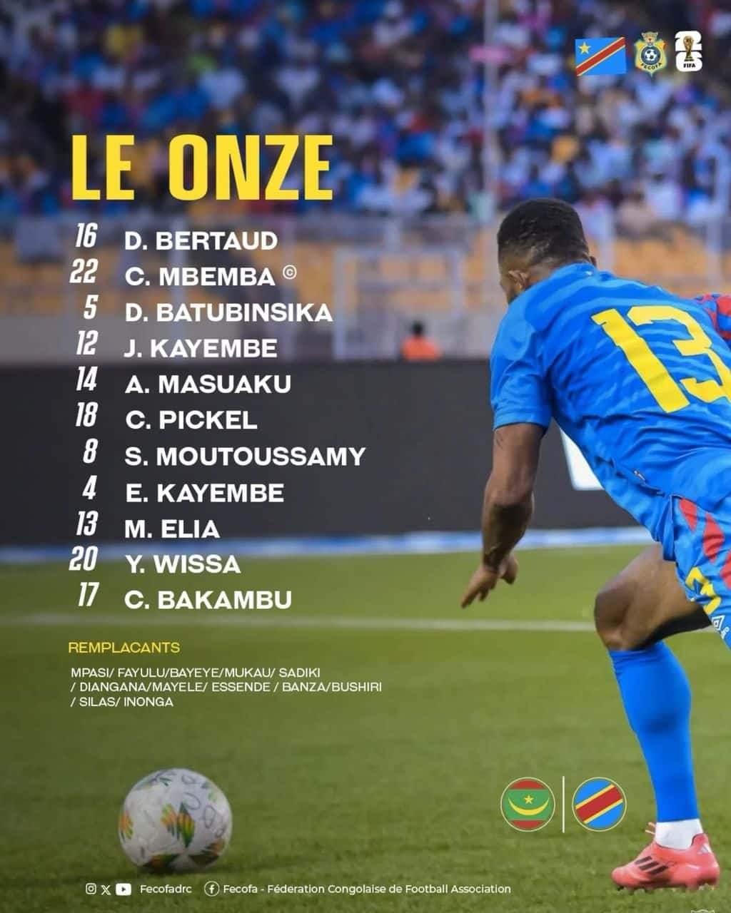 Les Léopards de la Rdc OntU Battu, CE Mardi 25 Mars à Nouadhibou, Les Mourabitounes de la Mauritanie lors de la Sixième Journée des Éliminatoires de la Coupé du Monde 2026, Sur le SCORE DE 2-0.