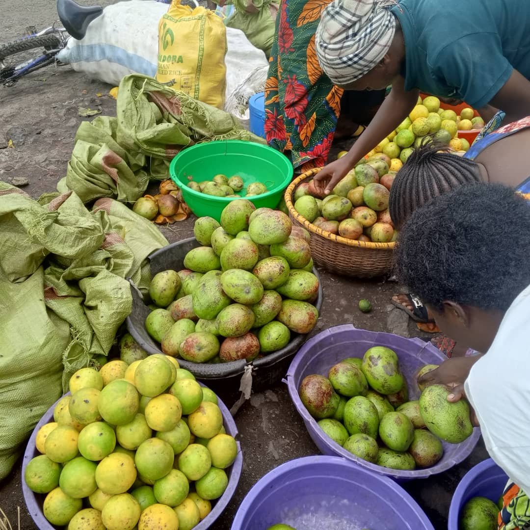 Oignons, poireaux, poivrons, ail, céleri, gingembre, tomates, et autres légumes ainsi que des épices et fruits, c’est ce qu’on peut voire étalés à même le sol et sur les étalages des vendeurs et vendeuses du marché de Kahembe notamment.