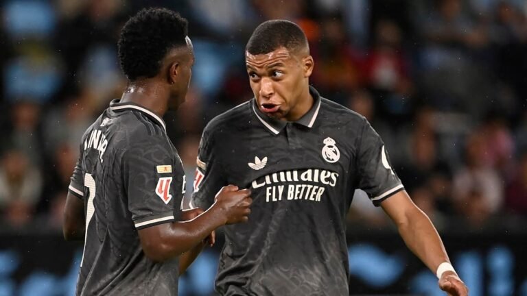Pour son match de reprise, le Real Madrid n’a pas eu la tâche facile, et l’a emporté d’une courte tête contre le Celta (2-1). Vinicius a offert la victoire à son équipe sur un service sublime de Modric. Visiblement peu affecté par ses déboires extra sportifs, Mbappé avait ouvert le score en première période d’une frappe magistrale, récompensant la domination des siens. Une supériorité que Vinicius aurait pu concrétiser plus tôt dans le match. En quête de son but, le Brésilien a parfois joué à l’envers, ce que n’a pas manqué de lui faire remarquer Mbappé après une tête mal jouée sur un centre pied droit de Valverde.